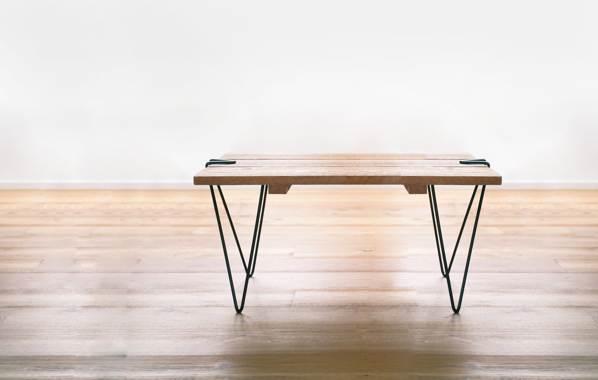 Durch das Zusammendrücken der Gestellenden nach Innen öffnet sich das Tick Tischgestell und kann auf die Platte geschoben werden. Beim Loslassen entsteht ein feste Klemmverbindung. Es war noch nie einfacher einen Tisch aufzubauen!
