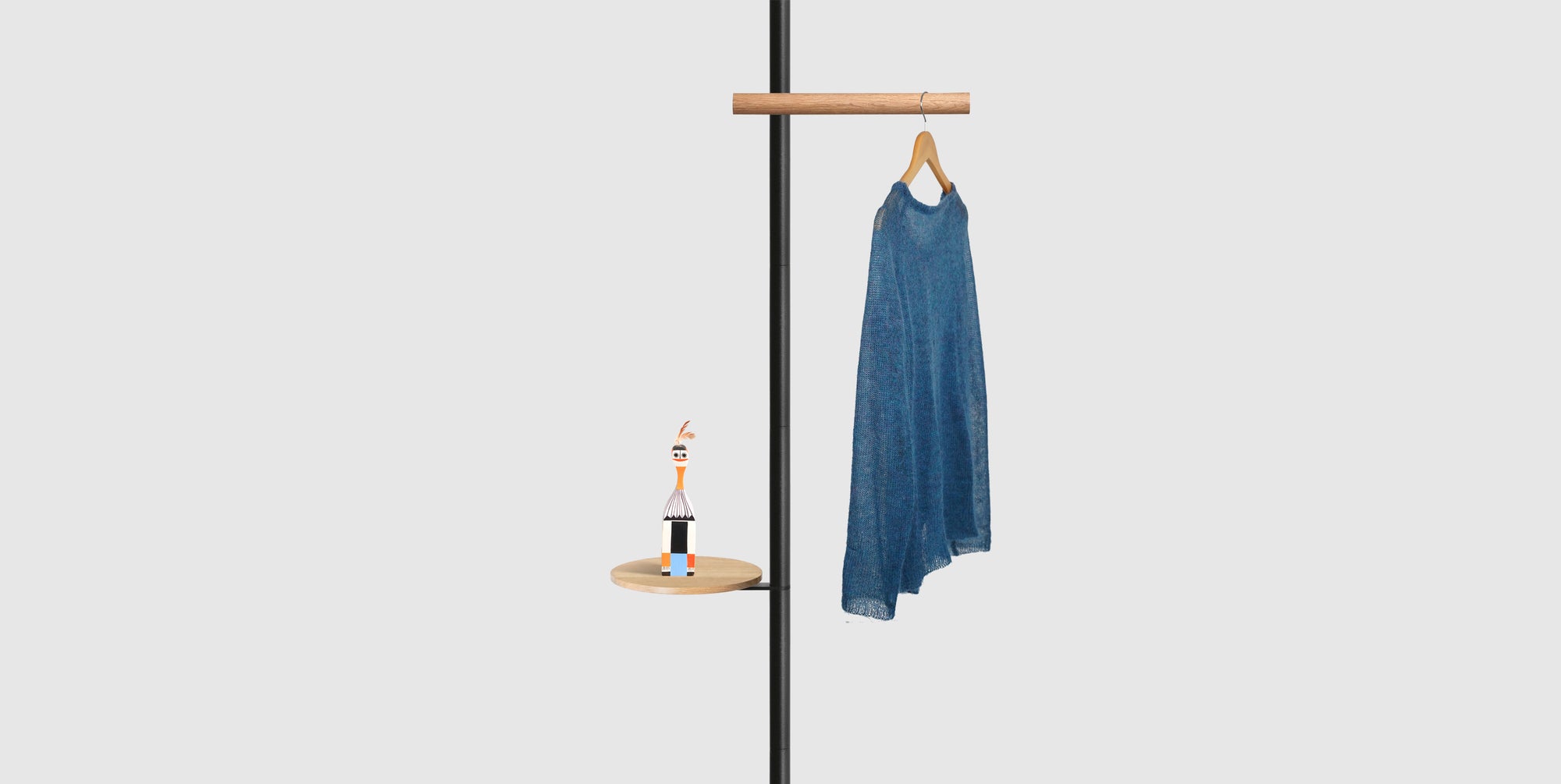 Das Wolperding ist weder Tisch noch Leuchte, weder Garderobe noch Pflanzenständer, sondern eine ganz neue Art von Möbelgattung. Vielfältige Funktionselemente wachsen an einem flexibel bestückbaren Stab zu einer bisher unbekannten Möbeltierart heran.