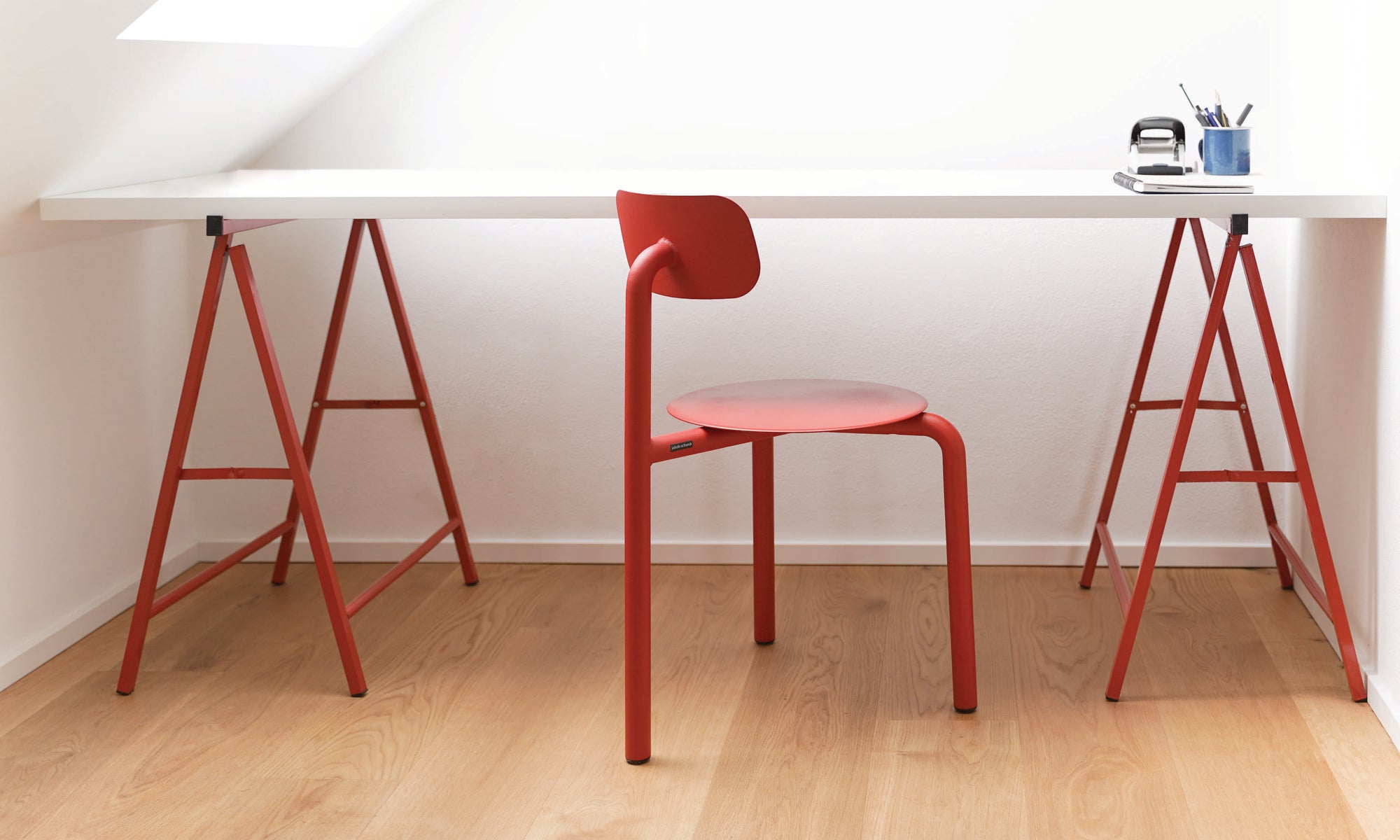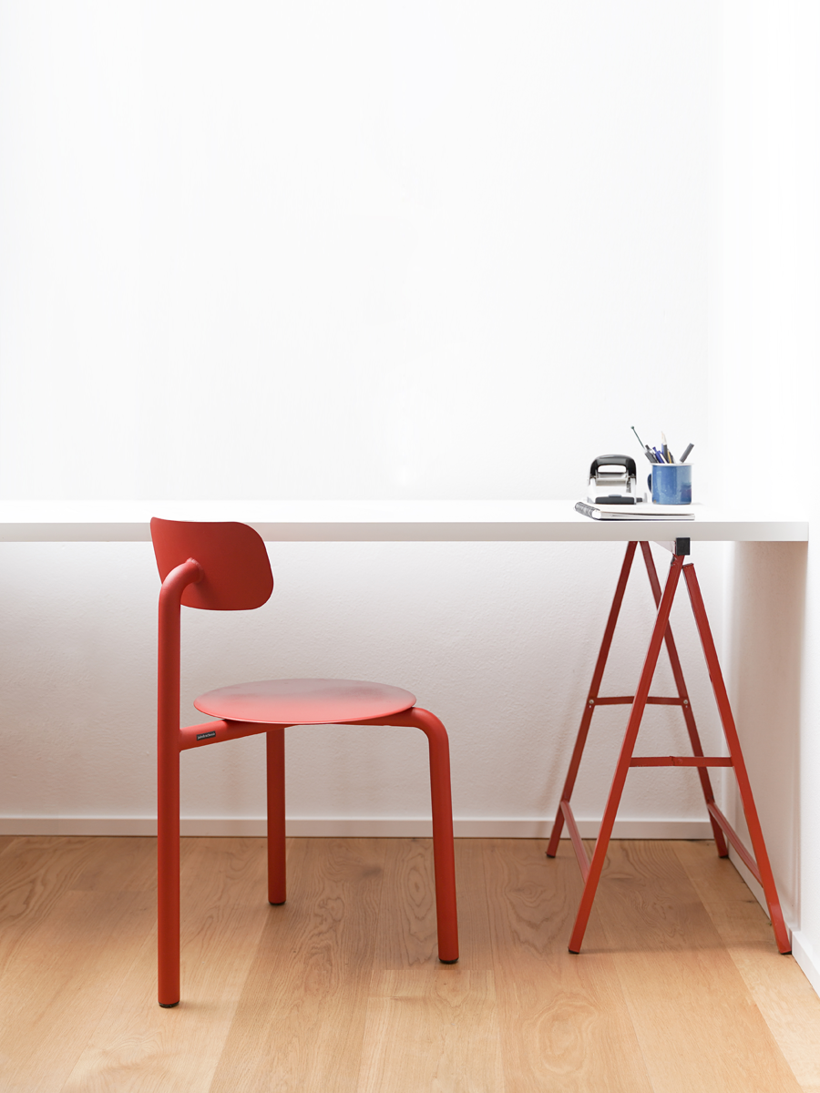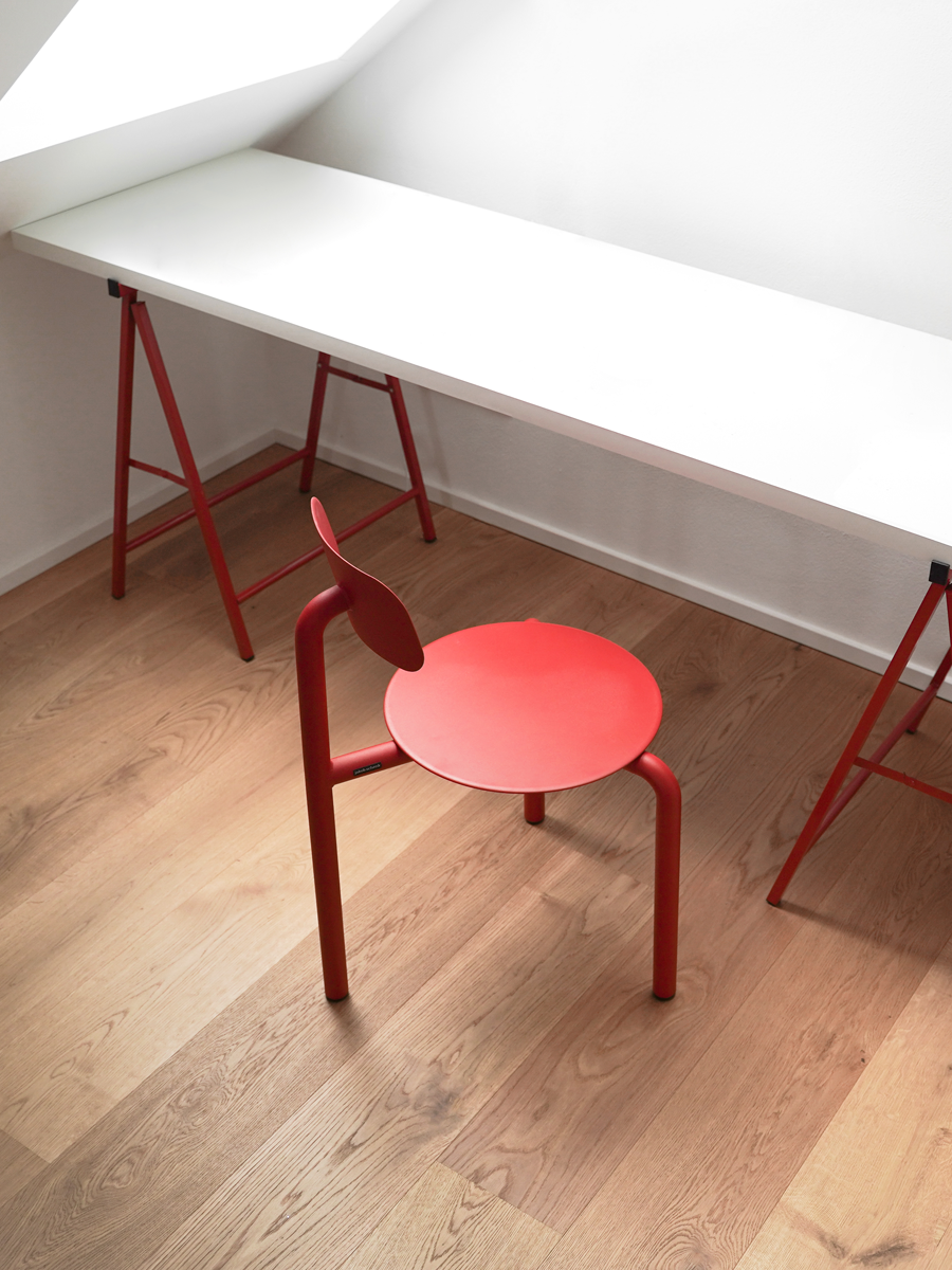 Alle guten Dinge sind Drei - leicht, mobil und vielseitig. Somit findet Drei sowohl am Esstisch, im Büro oder auf der Terrasse sein Zuhause. Er wandert aber auch gerne von Ort zu Ort, denn die handliche Rahmenkonstruktion und seine Leichtigkeit laden nur dazu ein, ihn überall dorthin mitzunehmen, wo man ihn gerade braucht.